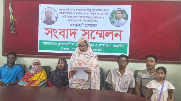 জয়পুরহাট প্রতিনিধি: জয়পুরহাটে বৈধ জমি আত্মসাৎ, নির্যাতন ও হুমকির অভিযোগে নিরাপত্তা চেয়ে দুই চিত্র শিল্পী ছেলে মাহবুব আলম ও মারুফ বিস্তারিত