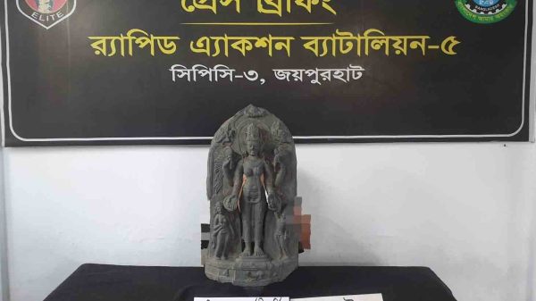 নওগা প্রতিনিধিঃ নওগাঁর ধামইরহাট উপজেলার বেনিদুয়ার এলাকা থেকে ২৫ কেজি ওজনের প্রাচীন আমলের কষ্টিপাথরের মূর্তিসহ দুইজনকে গ্রেপ্তার করেছে জয়পুরহাট র্যাব বিস্তারিত
