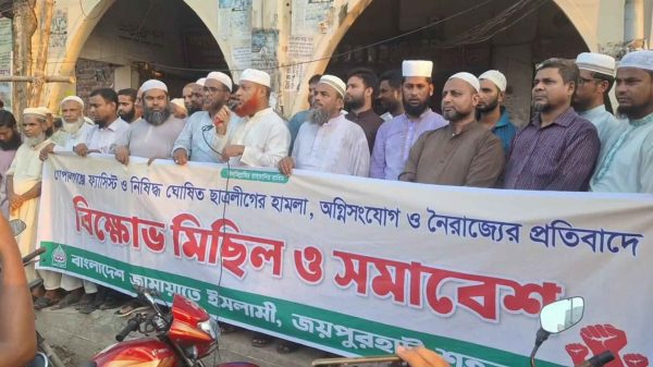 জয়পুরহাট প্রতিনিধিঃ গোপালগঞ্জে এনসিপির উপর নিষিদ্ধ ছাত্রলীগের হামলার প্রতিবাদে জয়পুরহাটে জামায়াতের বিক্ষোভ মিছিল ও সমাবেশ অনুষ্ঠিত হয়েছে। সমাবেশে জামায়াতে ইসলামীর বিস্তারিত