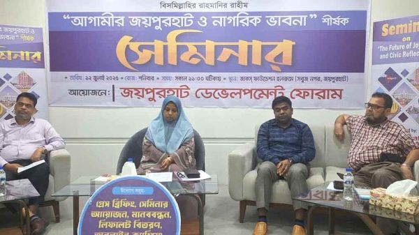 জয়পুরহাট প্রতিনিধিঃ আগামীর জয়পুরহাট ও নাগরিক ভাবনা শীর্ষক সেমিনার অনুষ্ঠিত হয়েছে। শনিবার দুপুরে জয়পুরহাট শহরের সবুজ নগর জাকস ফাউন্ডেশনের হল বিস্তারিত